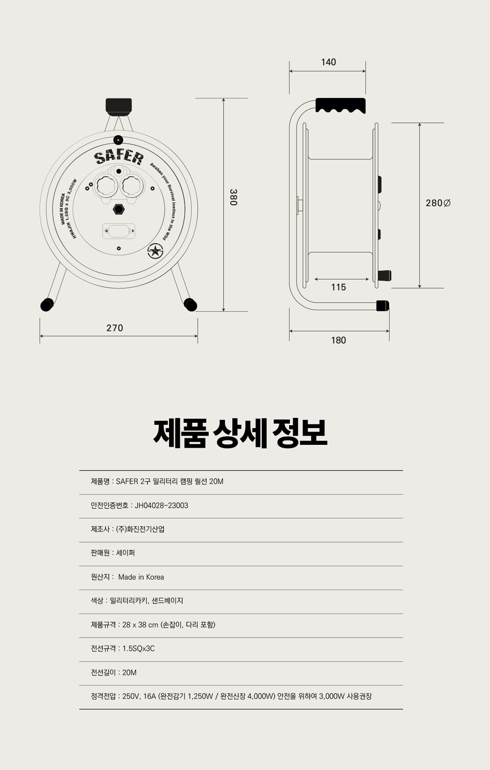 [ SAFER ] 세이퍼 캡형 2구 20m 차단기 감성 캠핑 릴선