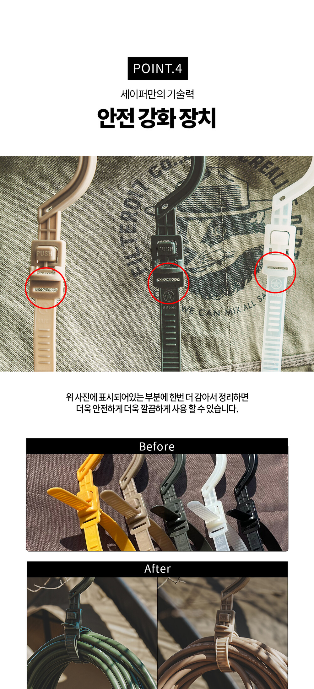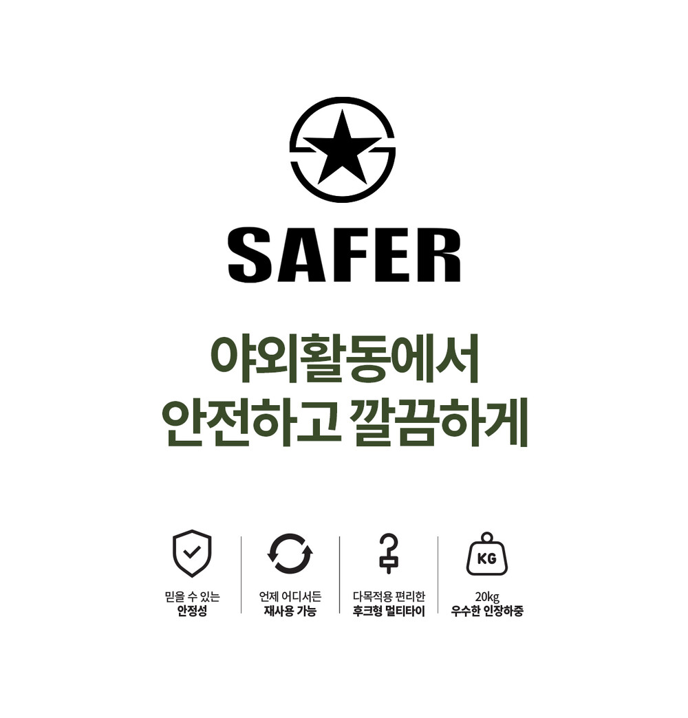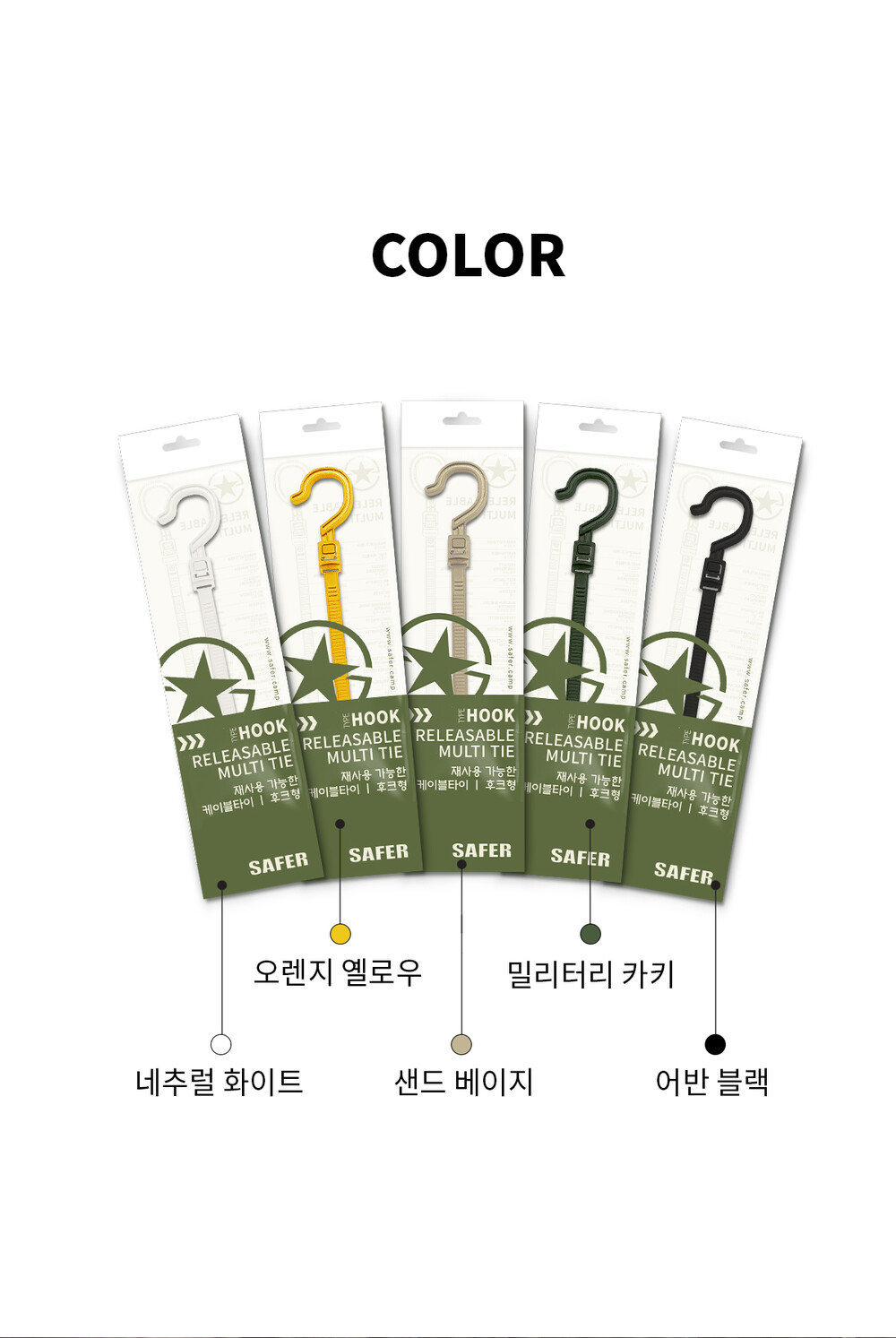 [ SAFER ] 세이퍼 재사용 가능한 후크형 캠핑 멀티 타이 케이블타이