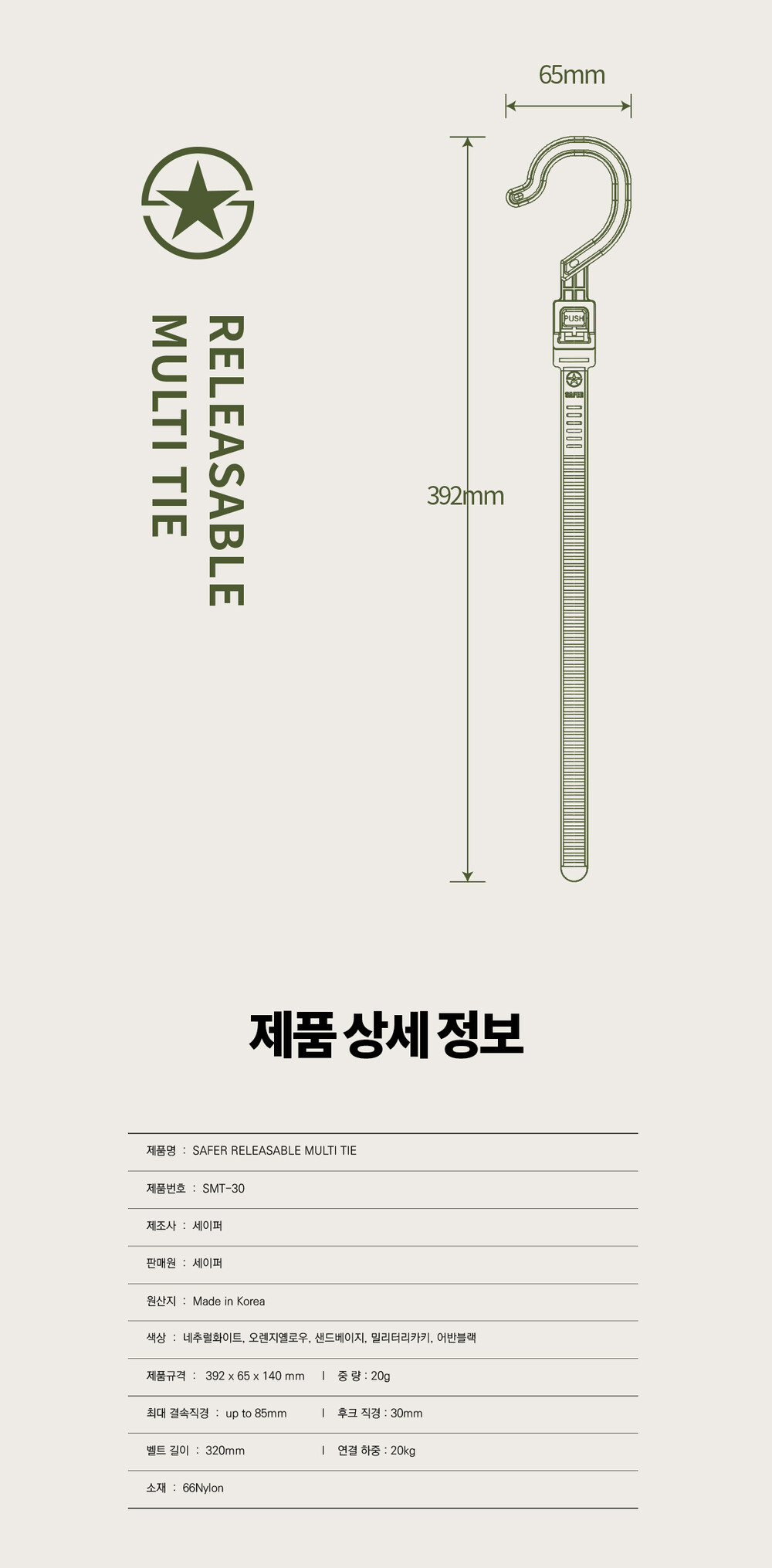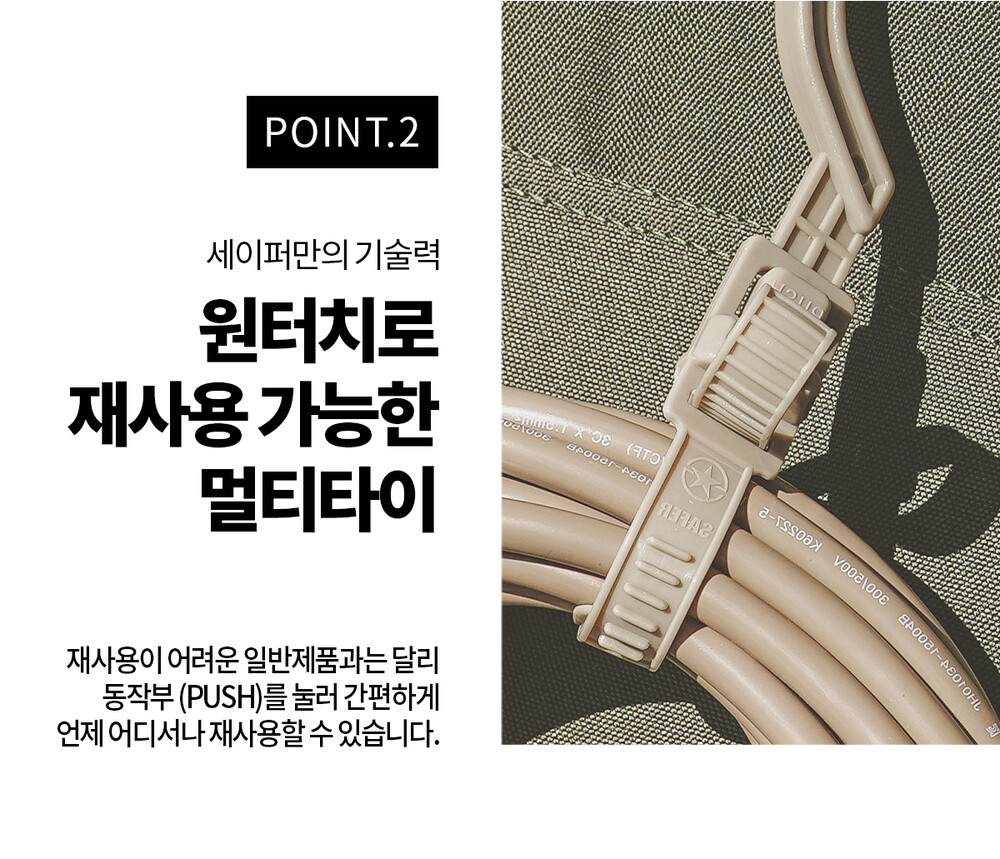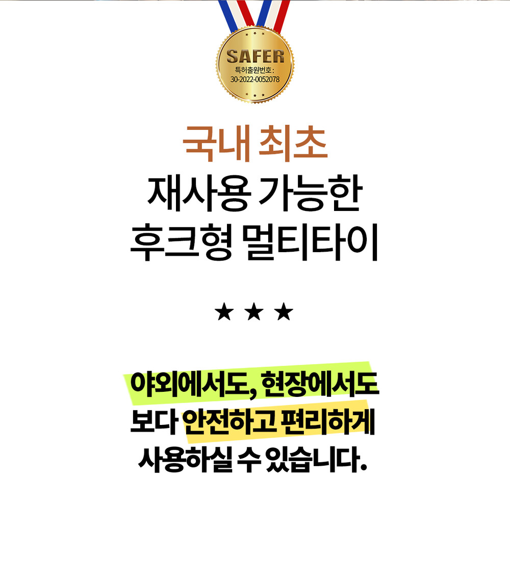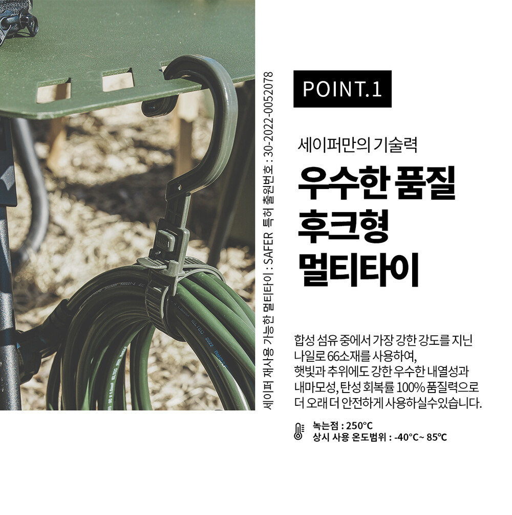 [ SAFER ] 세이퍼 재사용 가능한 후크형 캠핑 멀티 타이 케이블타이