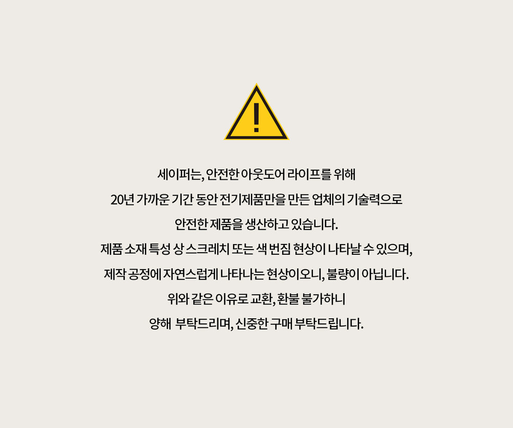 - 상품 하자, 오배송의 경우 수령일로부터 7일 이내 고객센터 접수 후 교환∙반품이 가능합니다. (교환/반품비 무료)