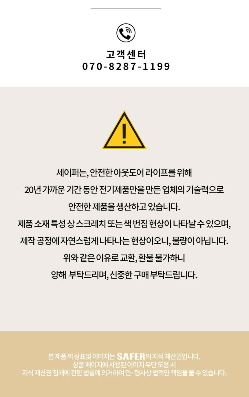 반품 주소 ㅣ 인천 동구 방축로 191번길 21-2 1동 1층 세이퍼(SAFER)