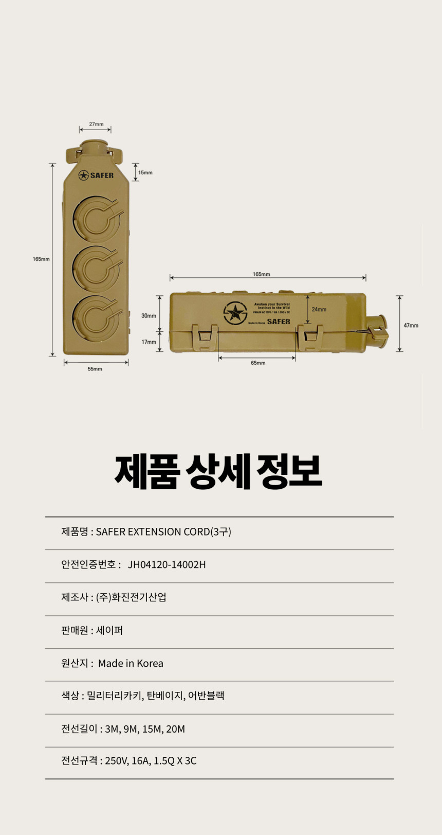 [ SAFER ] 세이퍼 3구 밀리터리 감성 캠핑 연장선